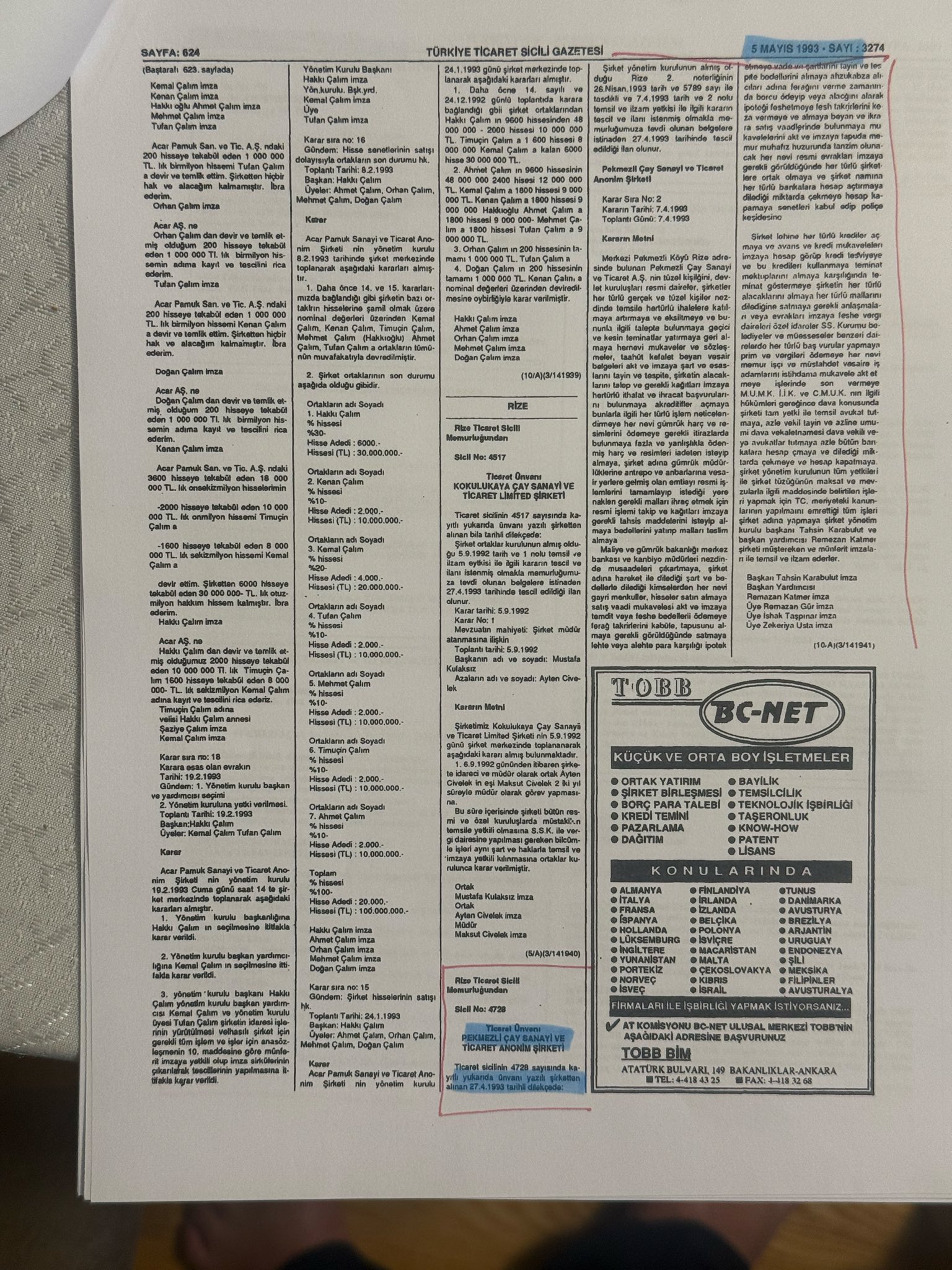 AKP Rize İl Başkanı Yılmaz Katmer’in firması Pekmezli Çay Sanayi’nden!