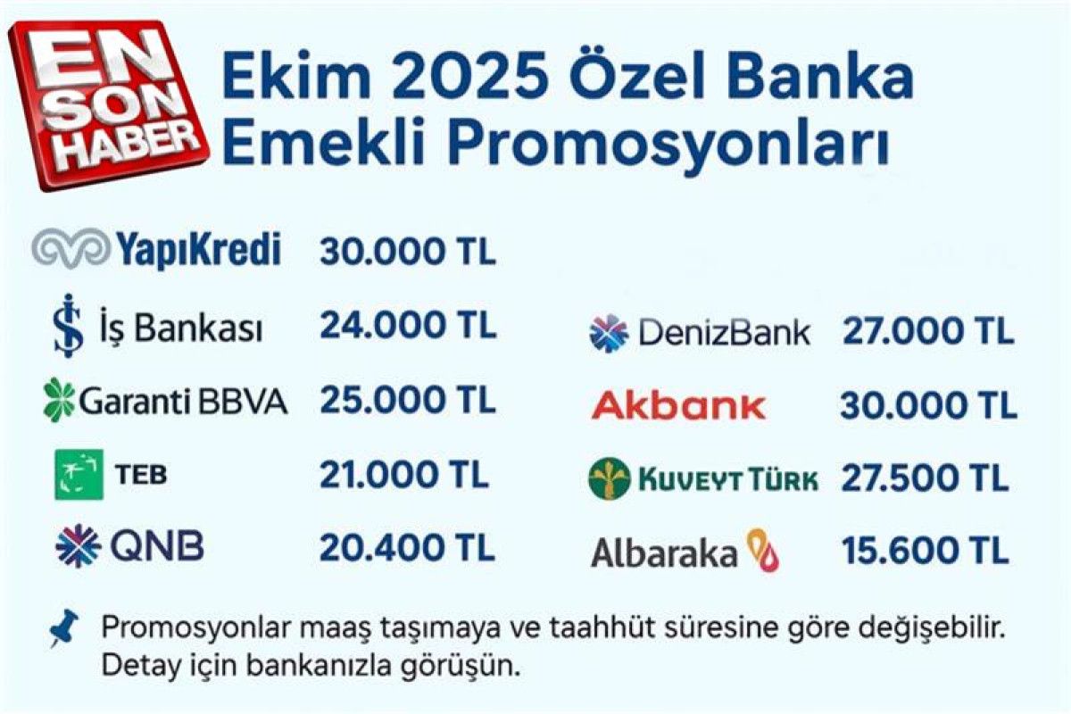 İş Bankası, maaşını bankaya taşıyan veya zaten İş Bankası’nda maaşı olan emeklilere 24.000 TL’ye kadar promosyon fırsatı sunmaktadır. Kampanya, Ekim 2025 için geçerli olacaktır.