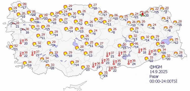 14 Eylül Pazar hava durumu tahminleri…