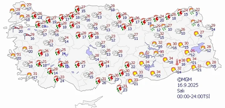 16 Eylül Salı hava durumu tahminleri…