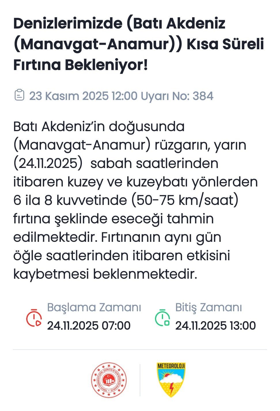 Denizciler için ise fırtına uyarısı yapıldı. Batı Akdeniz kıyı şeridinde rüzgar hızı 75 km/saati bulabilir.