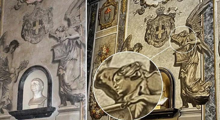 La Repubblica gazetesinin haberinde, başkentin merkezinde bulunan, geçmişi 4. yüzyıla dayanan bazilikada restorasyondan geçen fresklerden birindeki yüzün, “her gün haberlerde de görülen ve ülkenin en güçlü kadınlarından biri olan” BaşbakanMeloni’ye…