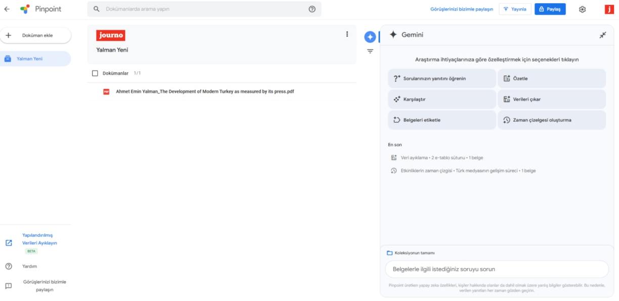 2020 yılında tanıtılan Journalist Studio (Gazetecilik Stüdyosu) aracının bir parçası olan Pinpoint, yeni yapay zeka özellikleriyle gazetecilere önemli bir destek sağlıyor.