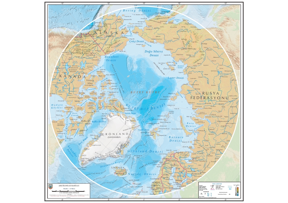 Arktik Bölgesi haritası. Grönland, bölge hakimiyeti açısından stratejik bir konumda bulunuyor.